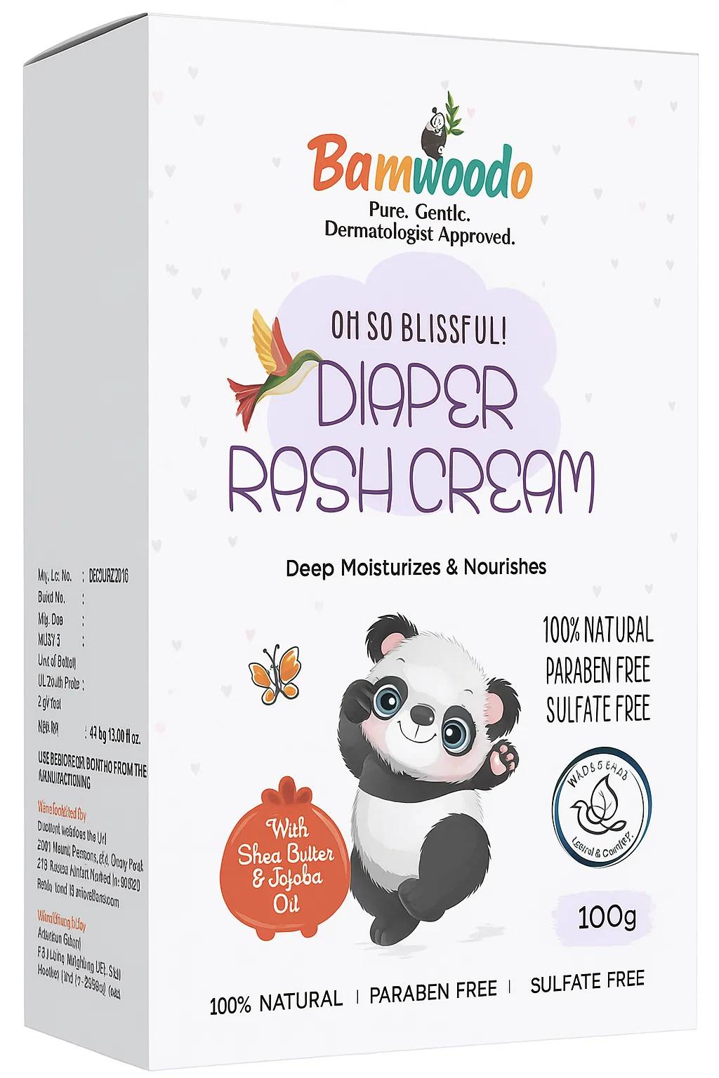 Bamwoodo Oh So Blissful! Diaper Rash Cream provides instant relief and protection for baby’s delicate skin. Combining natural butters and oils, this gentle barrier soothes irritation, prevents rashes, and keeps your baby happy—safe for daily use and harsh-chemical free.