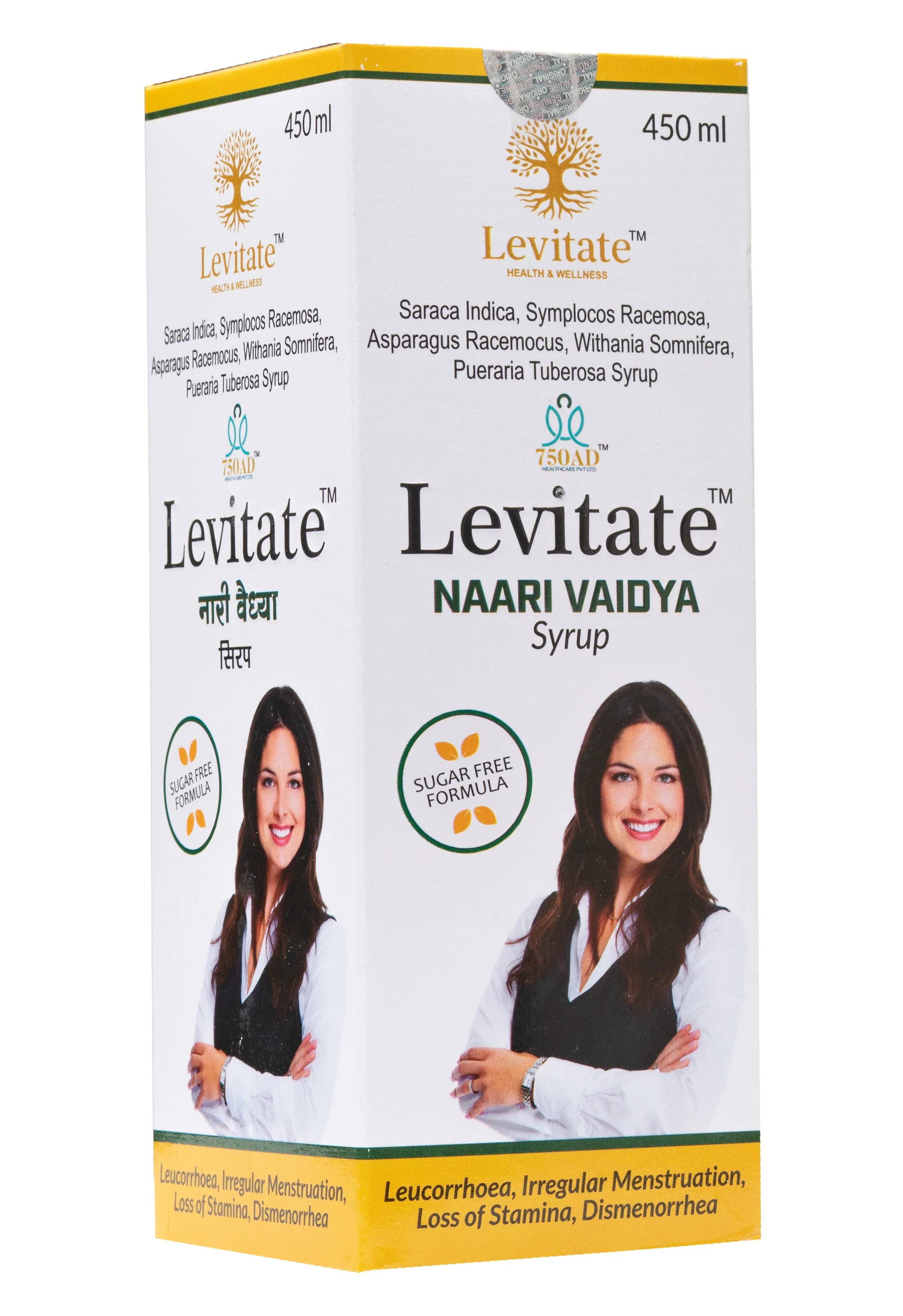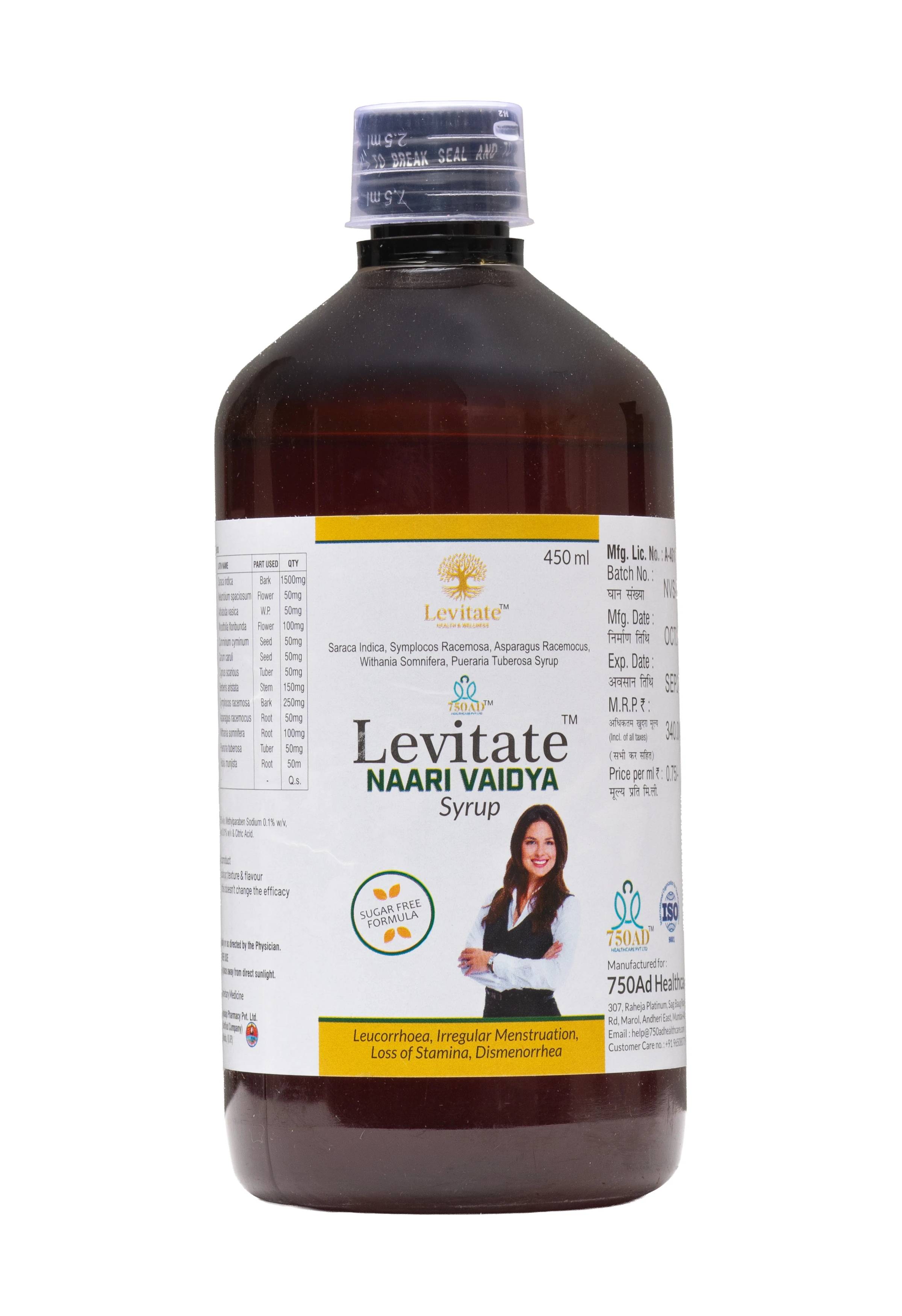 Experience balanced health and renewed vitality with Levitate Naari Vaidya Syrup (450 ml). This specialized Ayurvedic Proprietary Medicine is a Sugar-Free Formula designed specifically to support the female reproductive system and overall well-being.